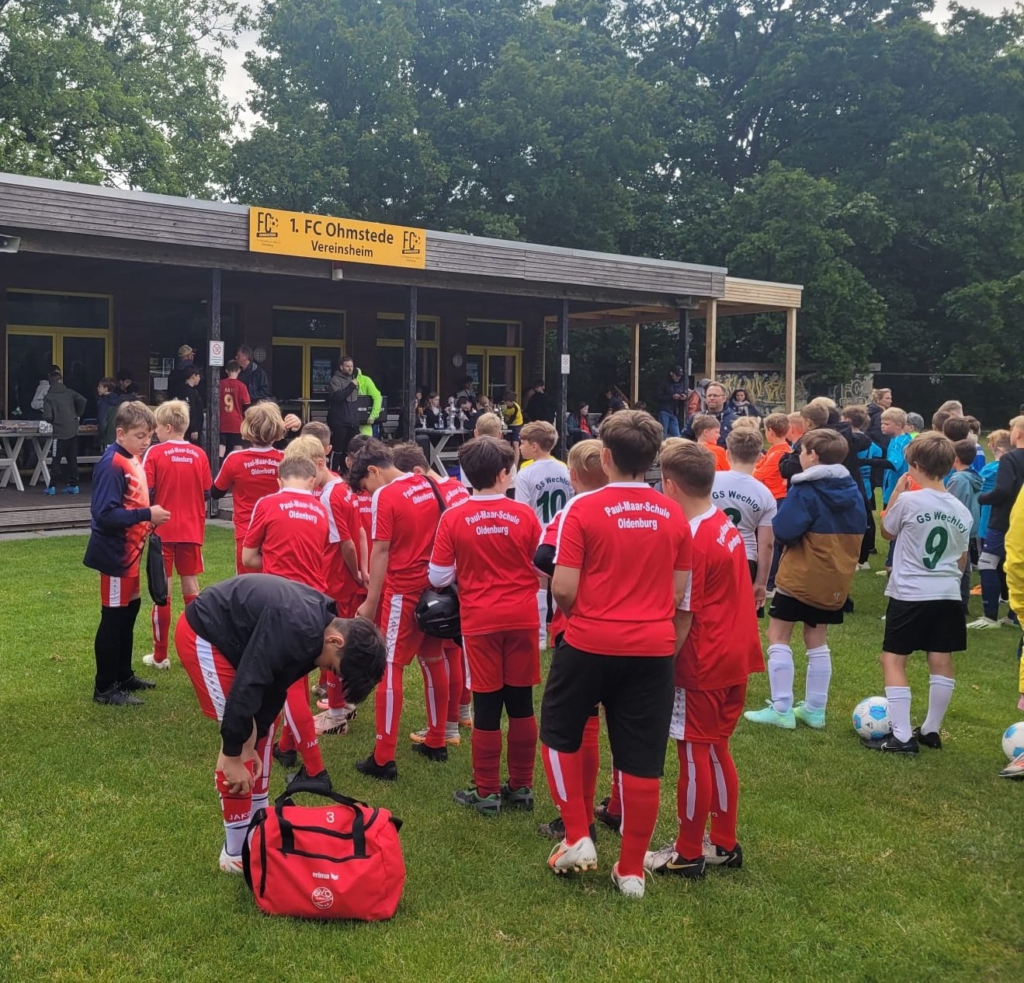 Zu den Endspielen beim Jungen-Fußball-Grundschulturnier am Dienstag, dem 27. Mai 2025 trafen sich die Mannschaften der Grundschulen aus dem Stadtsüden und dem Stadtnorden, die sich in den Vorentscheidungsspielen qualifiziert hatten, im Sportpark FC Ohmstede.