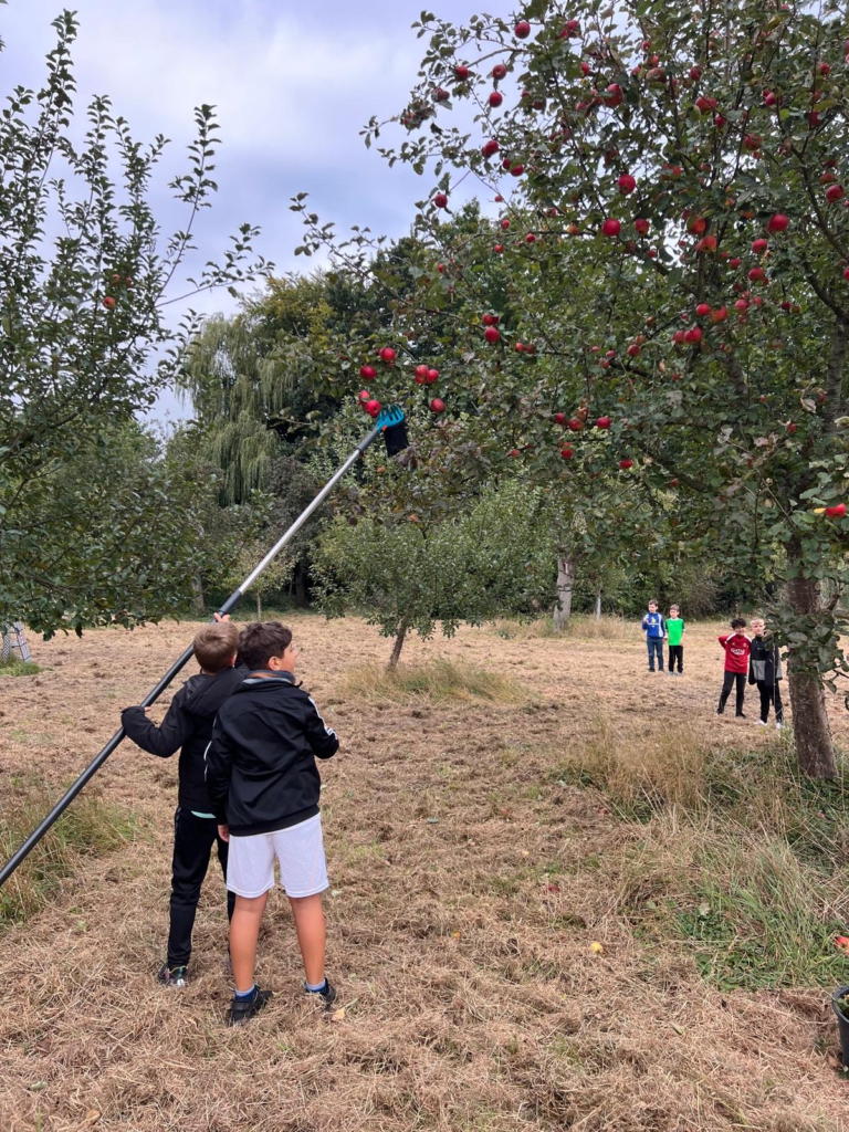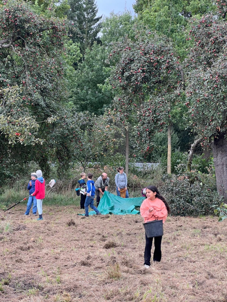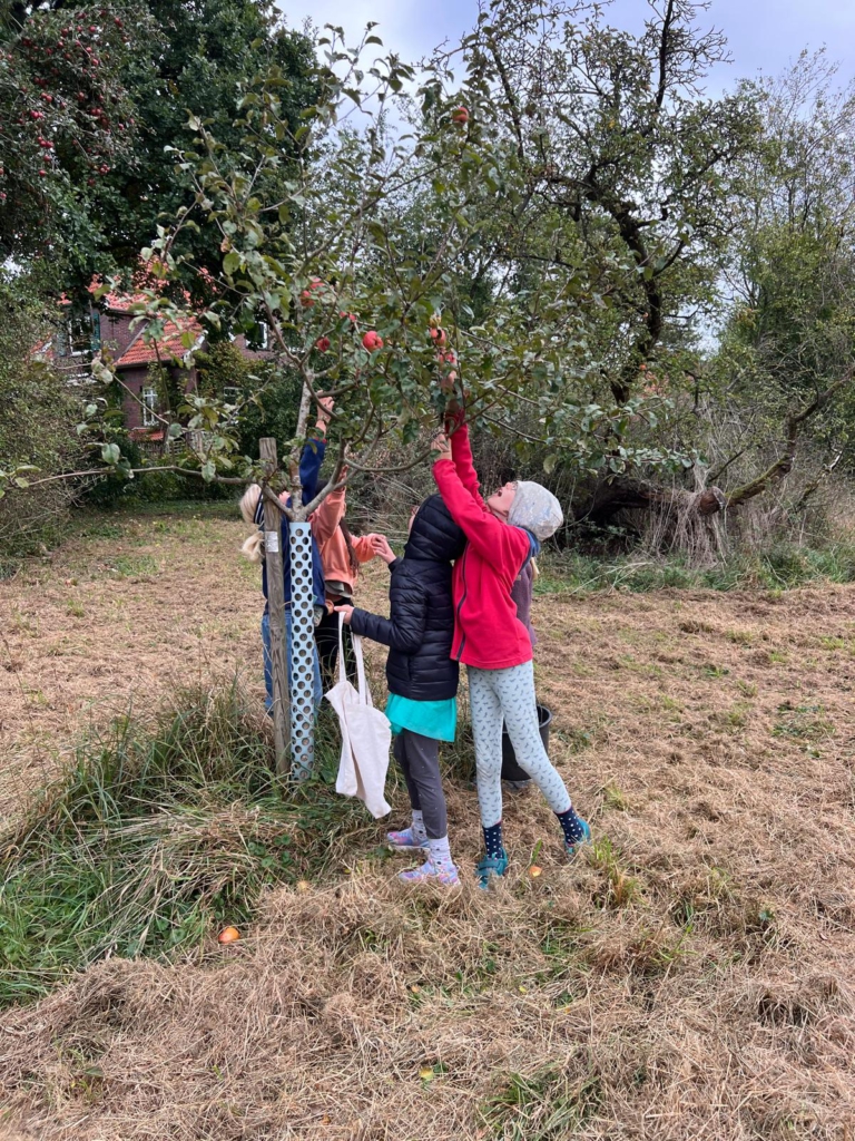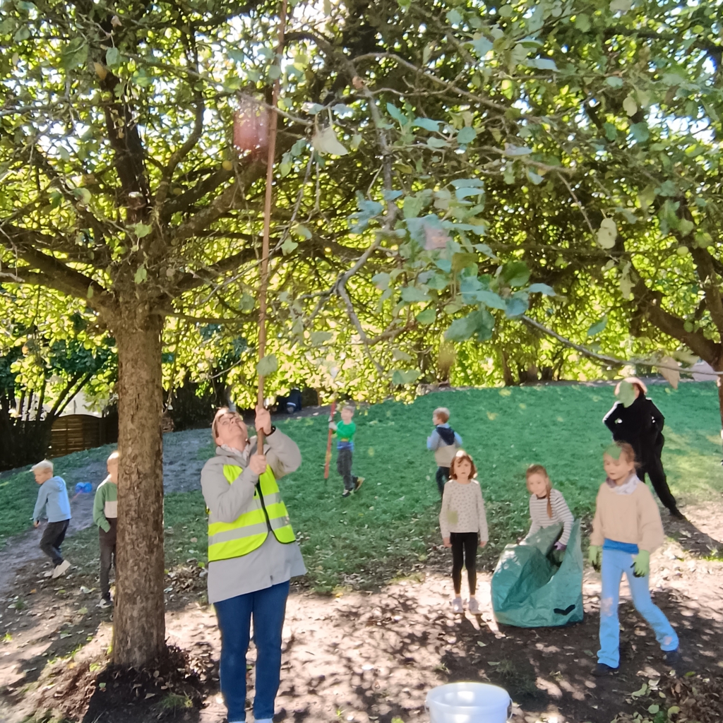 Die Äpfel von den Schulapfelbäumen wurden anschließend von den Kindern der Schulgarten-AG geerntet. Außerdem wurden Äpfel von den Eltern gespendet.