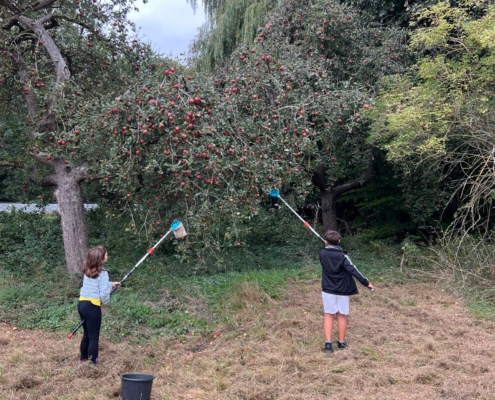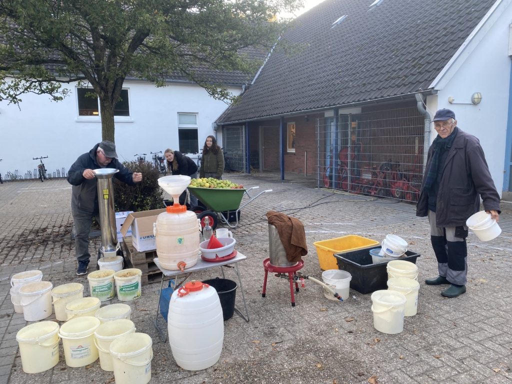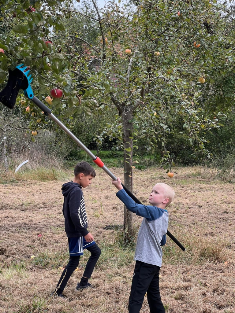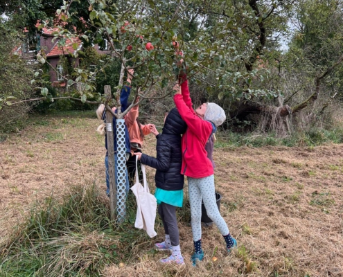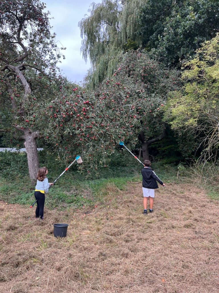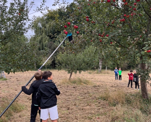 Die Äpfel von den Schulapfelbäumen wurden anschließend von den Kindern der Schulgarten-AG geerntet. Außerdem wurden Äpfel von den Eltern gespendet.