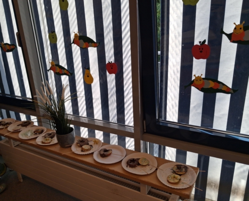 Zudem wurden in den ersten Klassen leckere Apfelwaffeln gebacken und die Klasse 3d genoss den selbst hergestellten Apfelcrumble.