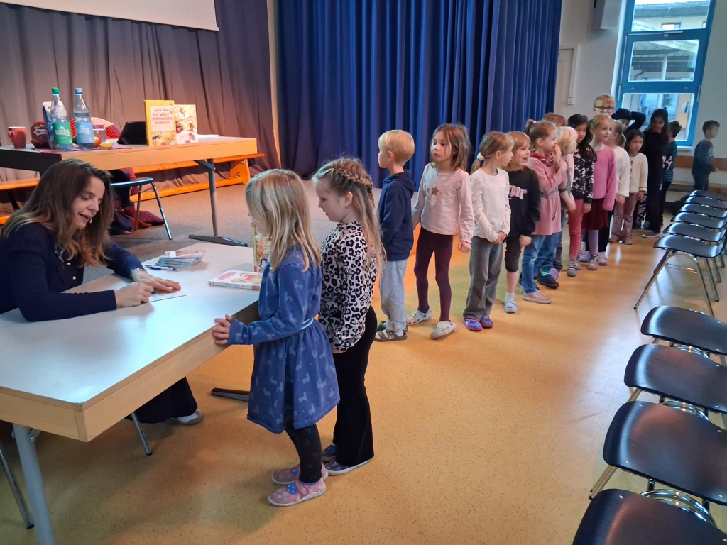 Jeweils nach den Lesungen konnten sich die Kinder von Sarah Welk eine Autogrammkarte signieren lassen.