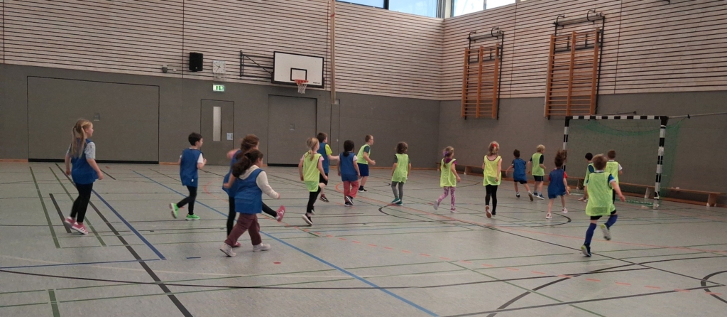 Jede Klasse hatte eine Mannschaft aus acht Feldspielern und einem Torwart zusammengestellt, mit der die Spielerinnen und Spieler jahrgangsweise gegeneinander antraten. Mit viel Einsatz und Schwung versuchten die Mädchen und Jungen möglichst viele Tore zu erzielen oder auch Tore der Gegenmannschaft zu verhindern. Lautstark wurden sie von den Zuschauern angefeuert.