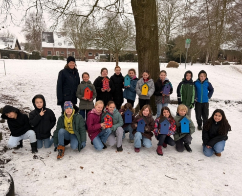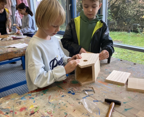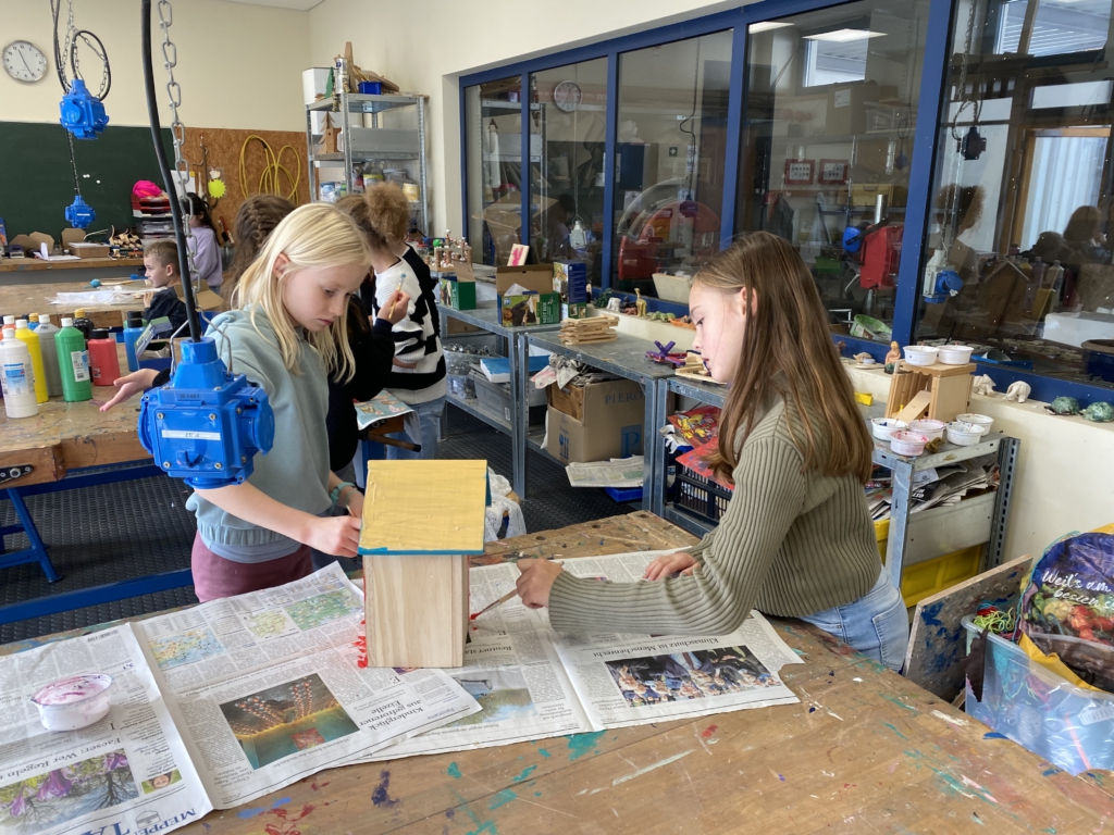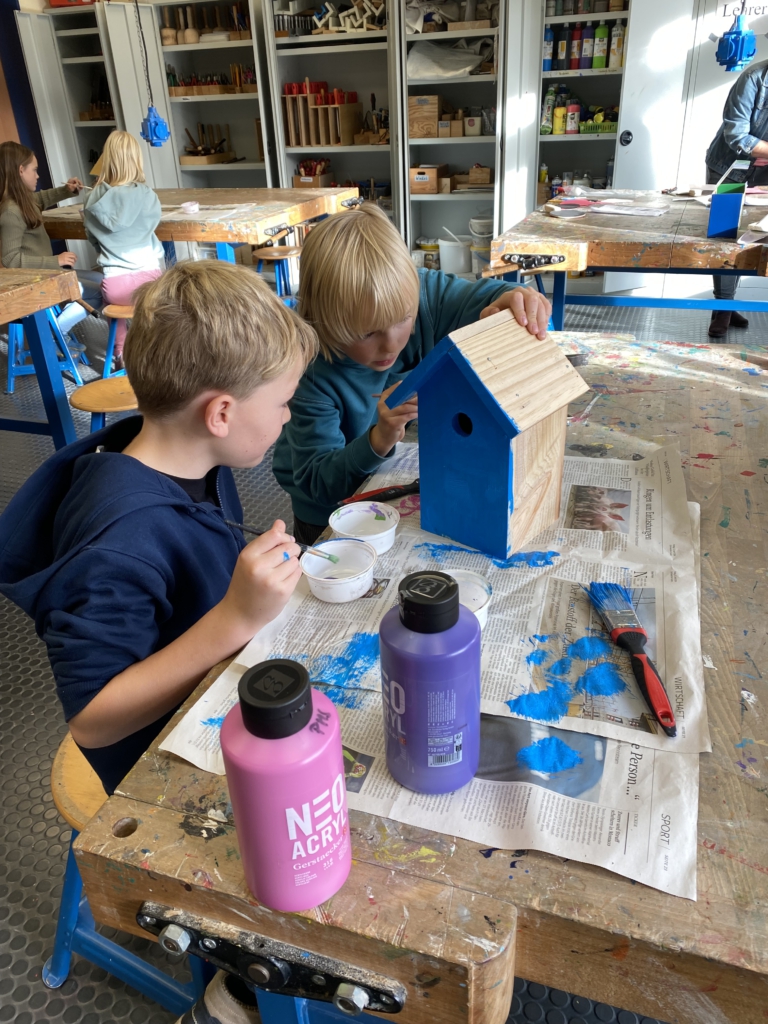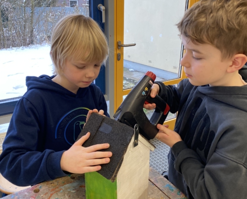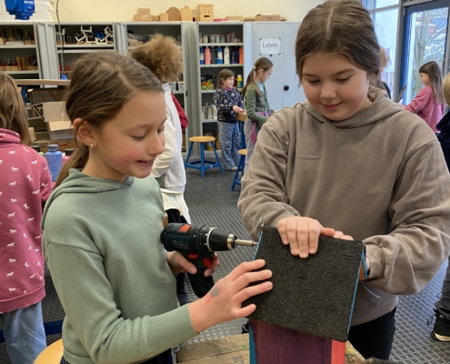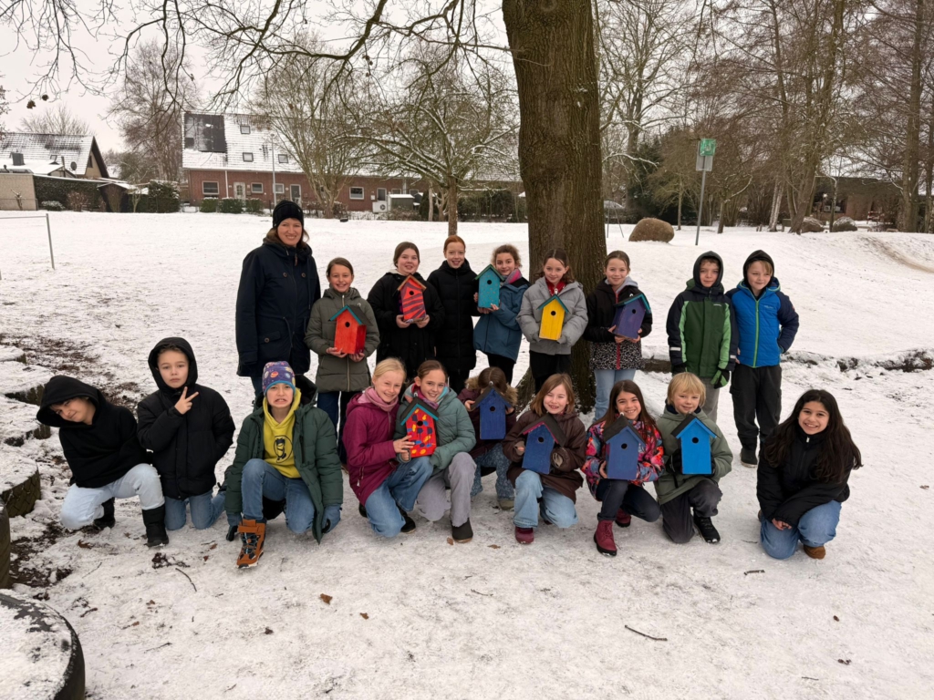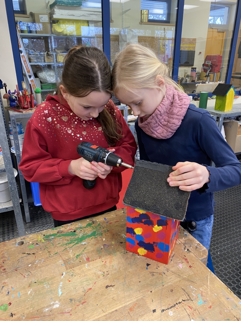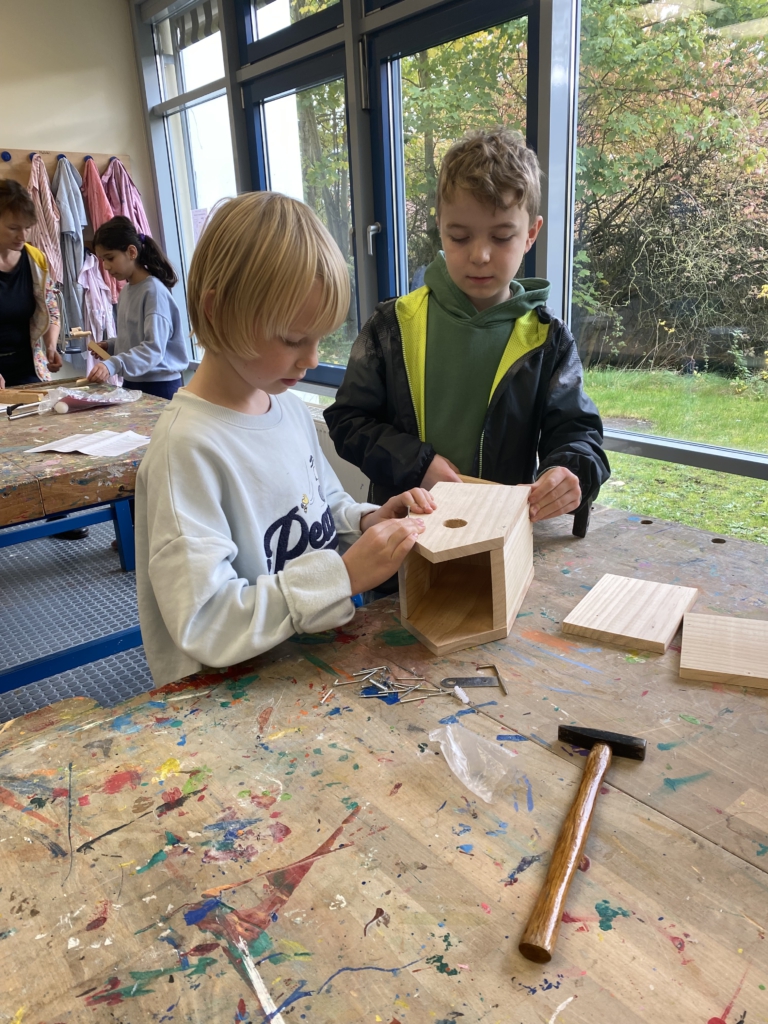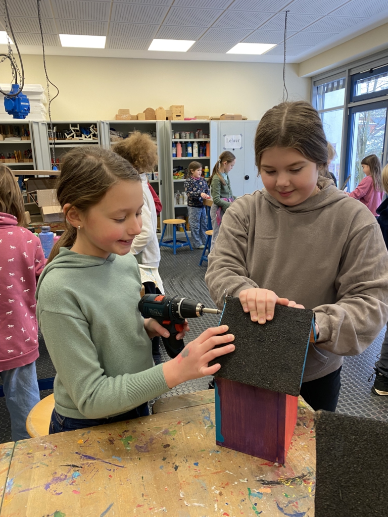 Gemeinsam mit ihrer Werklehrerin Frau Reershemius haben die Kinder der Klasse 4a im Werkunterricht Nistkästen gebaut.