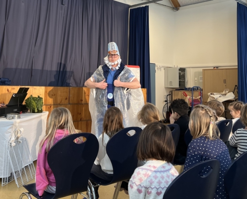 Am 5. Februar 2026 hatten die Schülerinnen und Schüler der ersten Klassen einen besonderen Vormittag, denn Schauspieler des Oldenburgischen Staatstheaters kamen für die Aufführung der Kinderoper „Ritter Odilo und der strenge Herr Winter“ in die Paul-Maar-Schule.