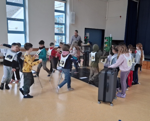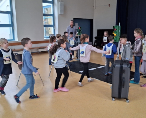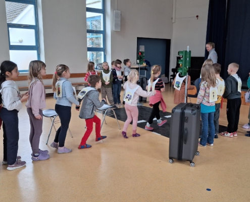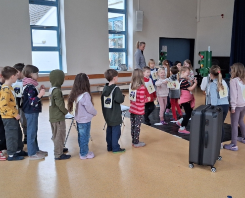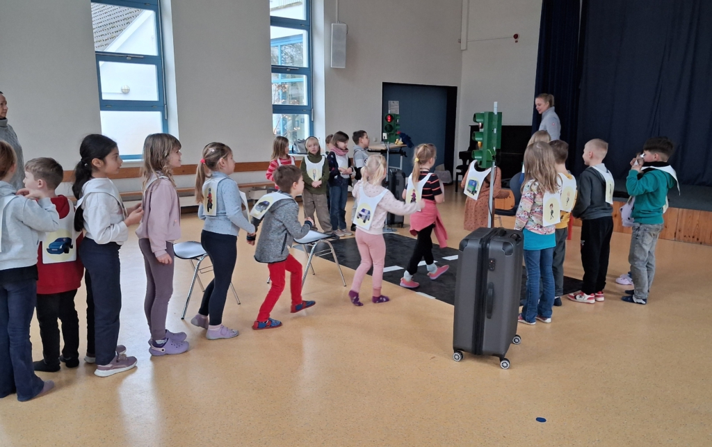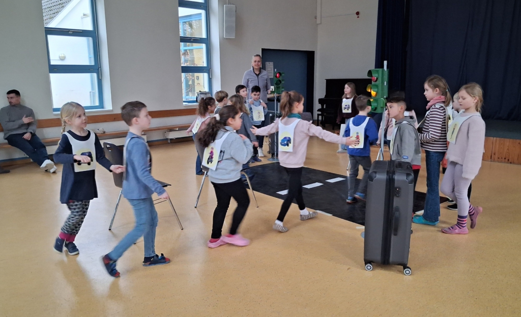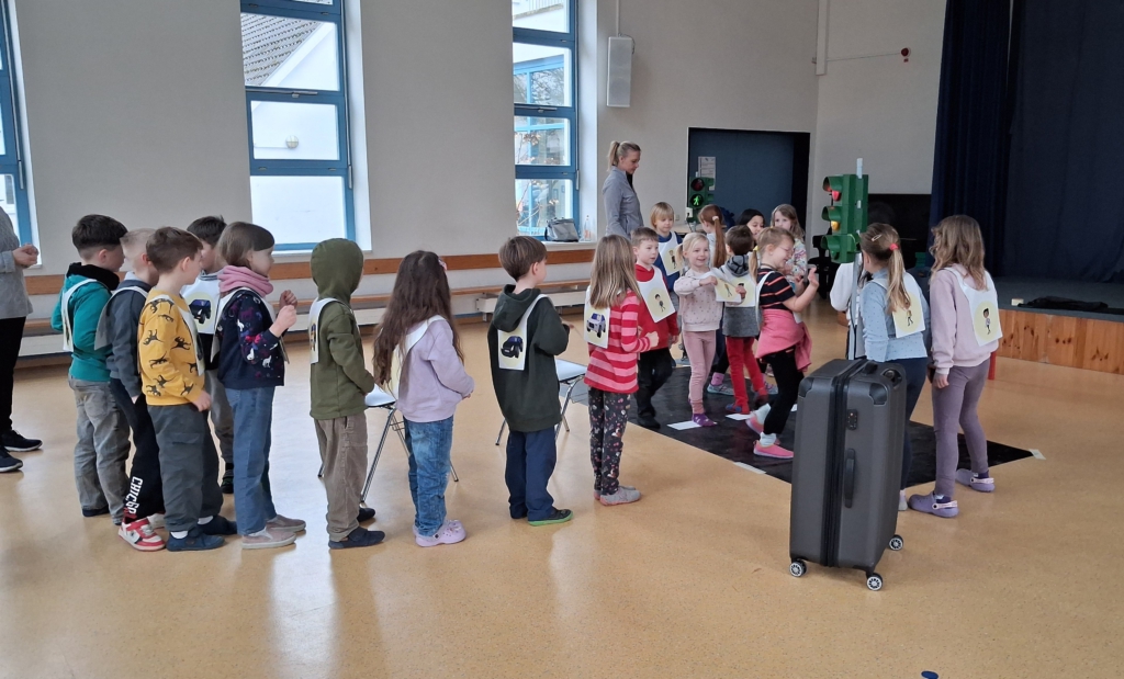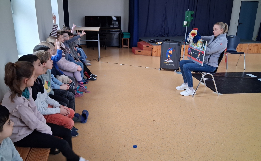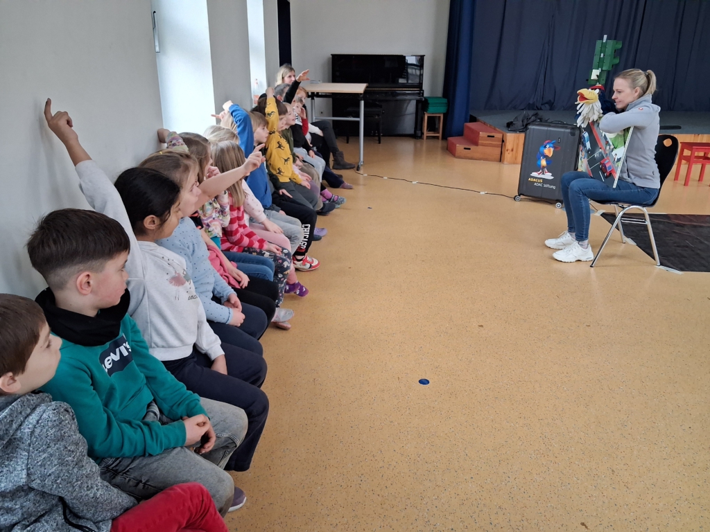 Beim Verkehrssicherheitsprogramm „Aufgepasst mit ADACUS“ wurde den Schülerinnen und Schülern der ersten Klassen auf spielerische Weise gezeigt, wie sie sich als Fußgänger sicher und korrekt im Straßenverkehr bewegen.