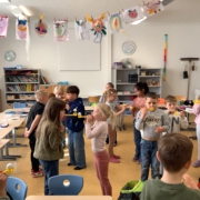 Die Schülerinnen und Schüler der Klasse 1b mit ihrer Klassenlehrerin Frau Fuths nehmen seit dem zweiten Halbjahr des Schuljahres 2025/26 an dem Projekt „Klasse 2000“ teil.